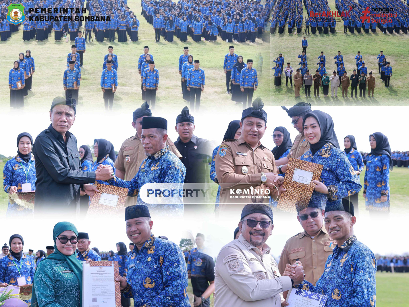 Bombana, PPID Utama – Bupati Bombana, Ir. Burhanuddin, M.Si bersama Wakil Bupati, Ahmad Yani, S.Pd., M.Si didampingi Ketua TP PKK Kabupaten Bombana, Hj. Fatmawati Kasim Marewa, S.Sos dan Ketua DPRD Kabupaten Bombana, Iskandar, SP., secara resmi menyerahkan Surat Keputusan (SK) kepada 2.106 Peg ...