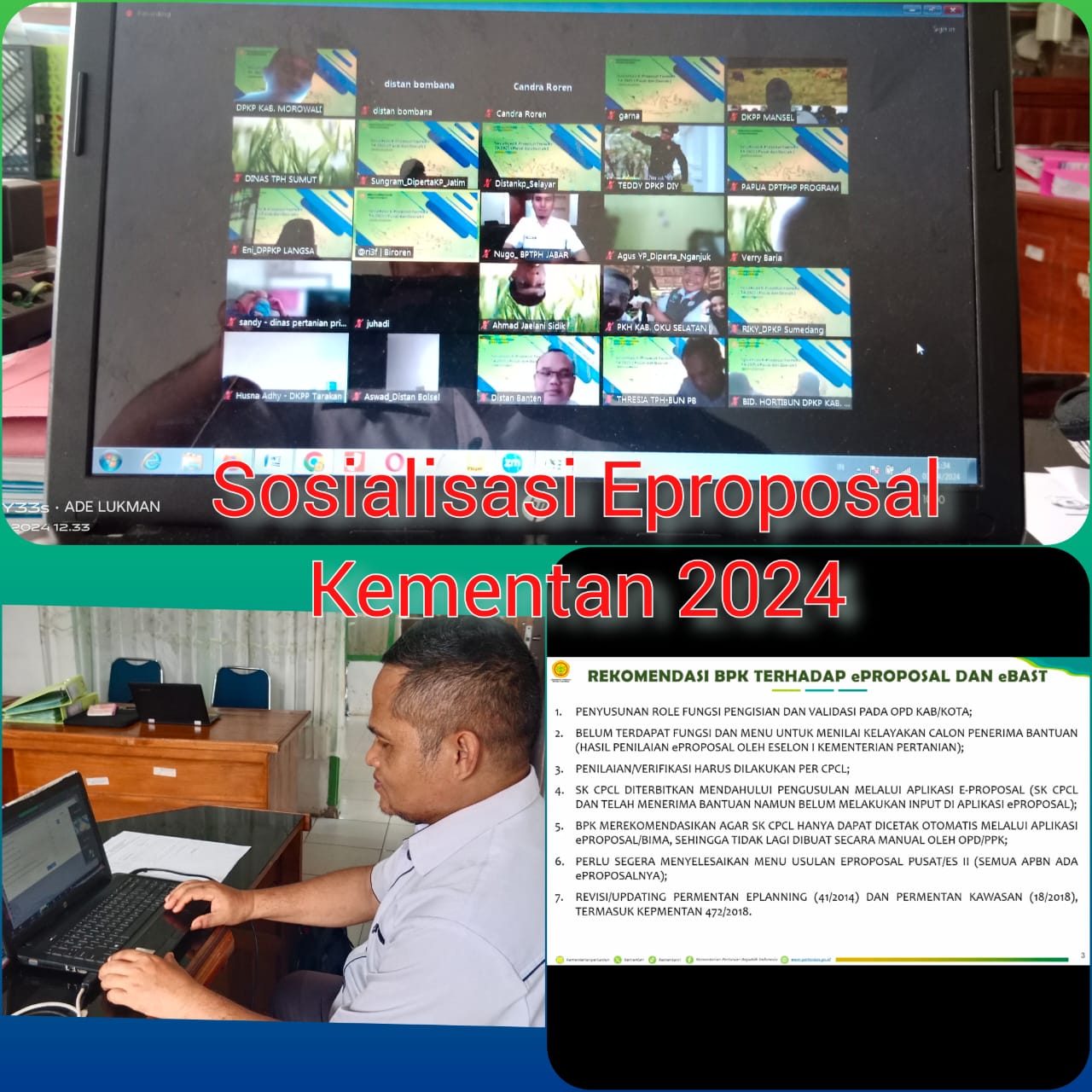 Rabu, 03/04/2024 admin Perencana Dinas Pertanian Kabupaten Bombana mengikuti Sosialisasi E-Proposal Menu Pusat Lingkup Kementerian Pertanian Tahun 2024 secara online, yang diselenggarakan oleh Biro Perencanaan Kementerian Pertanian.