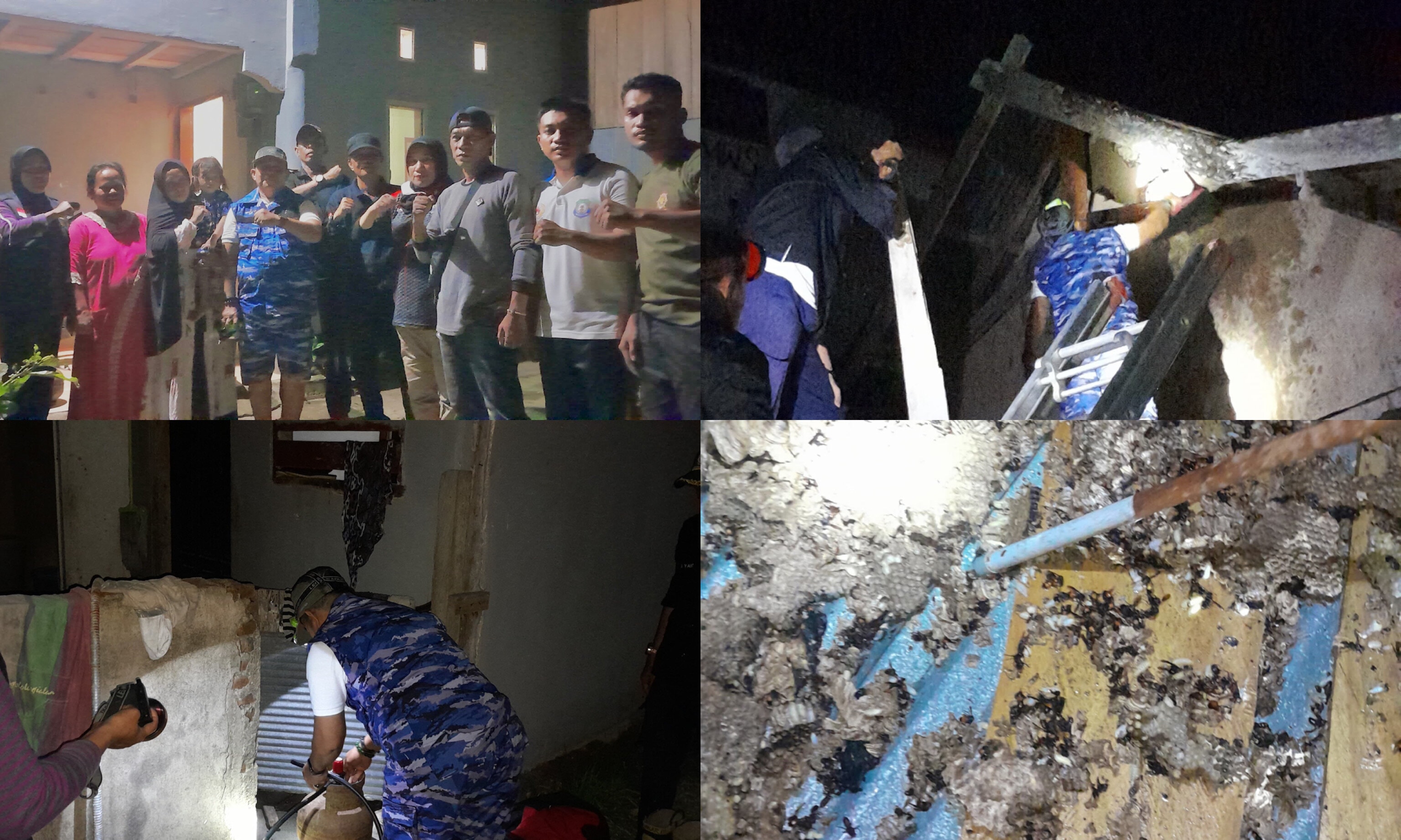 Jum'at (15/3/2024), Berdasarkan informasi yang diterima dari ibu Durratul jinna' menginformasikan kesalah satu anggota Damkar bahwa adanya Sarang Tawon Vespa Yang berada Tepat diatap Rumahnya dan Meresahkan Warga Sekitar.
