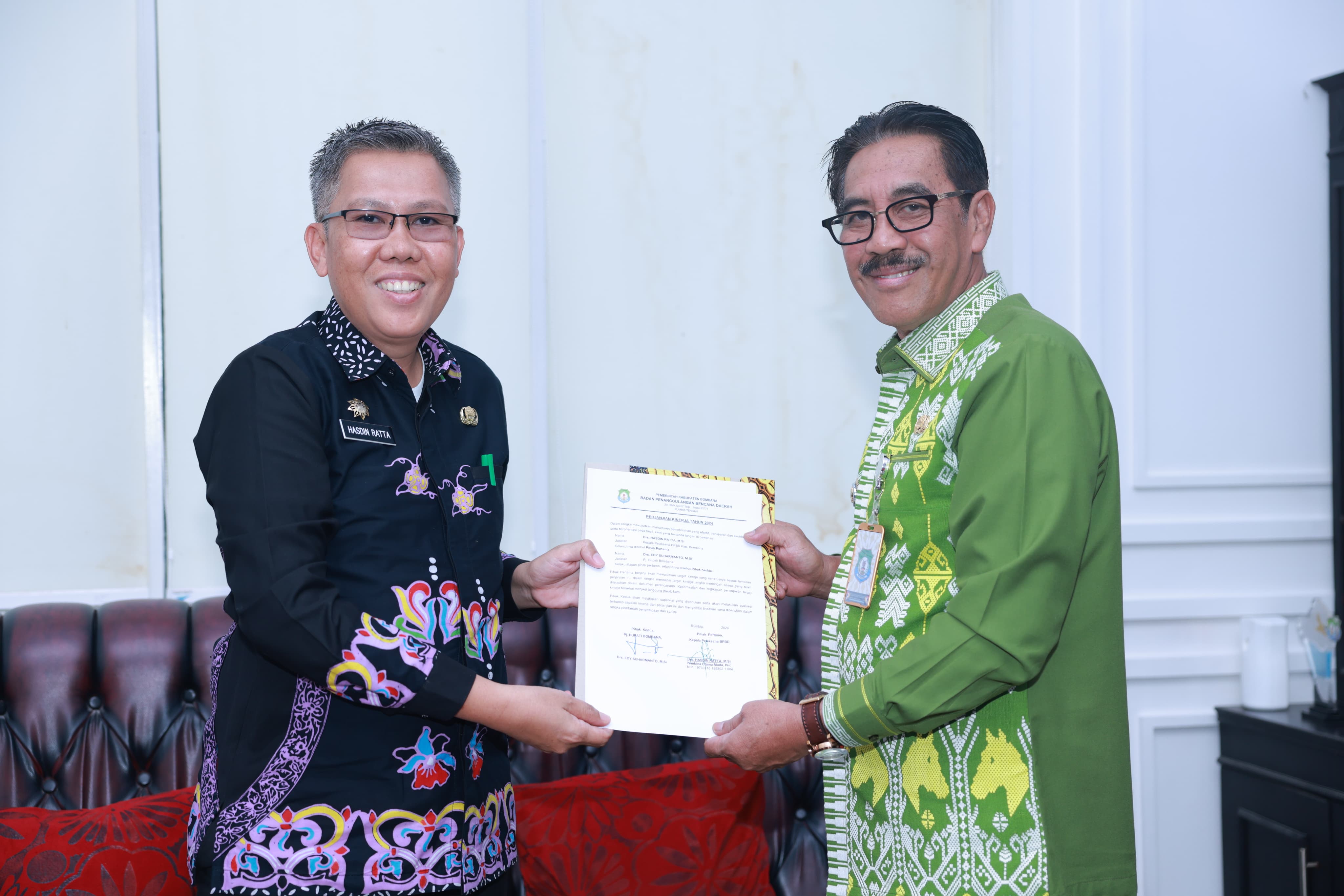 Kamis 22 Januari 2024 bertempat di Kantor Bupati Bombana, Kepala BPBD Kabupaten Bombana Drs Hasdin Ratta.M.Si. melakukan Penandatanganan Perjanjian Kenerja Tahun 2024 dengan. hal. Bupati Bombana Drs. Edy Suharmanto, M.Si.